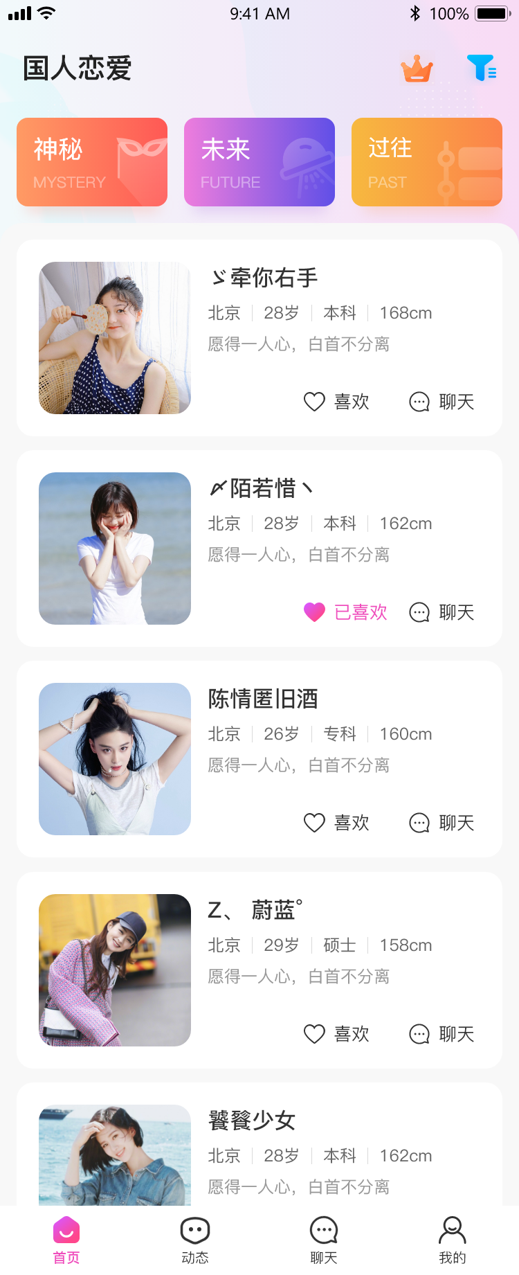 全民婚恋平台,不分高低端 ,只接纳以结婚为目的的男女会员。为符合法定年龄的社会各界未婚人士提供婚恋信息。